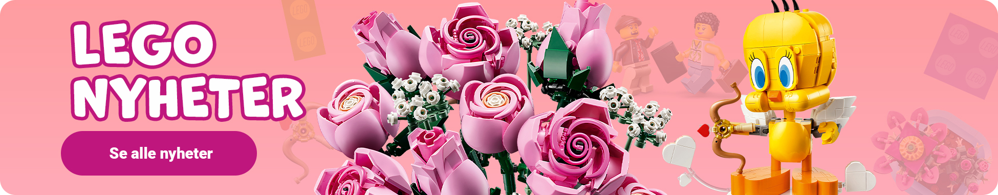 Enten du er ute etter LEGO, kreative byggesett, lekebiler som durer av gårde, eller dukker og bamser som blir med på eventyr vil finner du det hos oss. Vi har også et stort utvalg babyleker som stimulerer sansene og rollelek som lar barna leve ut sine drømmer.