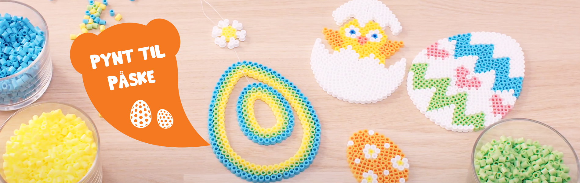 Til påske kan du pynte med blomster, egg og kyllinger. Du kan perle pynten selv, så blir det ekstra hyggelig å sette det frem.