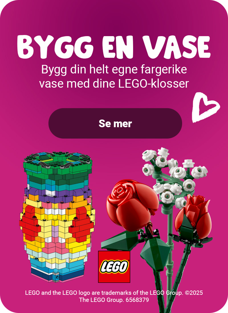 Velkommen til Ringo sin LEGO shop. Om du er på utkikk etter LEGO Star Wars, LEGO Blomster eller de aller siste nyhetene fra LEGO så kan du finne det hos Ringo. Hos oss har vi noe for alle, enten du har bygget LEGO i mange år eller skal finne det første settet til barna dine. Våre LEGO-sett er perfekte for både nybegynnere og eksperter, og vi har noe som passer for enhver smak og ferdighetsnivå. Vi er stolte av å tilby et bredt utvalg av LEGO esker som inspirerer til kreativitet og lek.