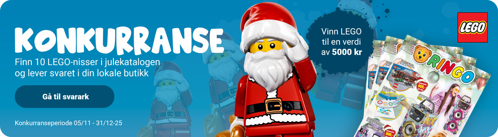 Velkommen til Ringo sin LEGO shop. Om du er på utkikk etter LEGO Star Wars,  LEGO Blomster eller de aller siste nyhetene fra LEGO så kan du finne det hos Ringo. Hos oss har vi noe for alle, enten du har bygget LEGO i mange år eller skal finne det første settet til barna dine. Våre LEGO-sett er perfekte for både nybegynnere og eksperter, og vi har noe som passer for enhver smak og ferdighetsnivå. Vi er stolte av å tilby et bredt utvalg av LEGO esker som inspirerer til kreativitet og lek.