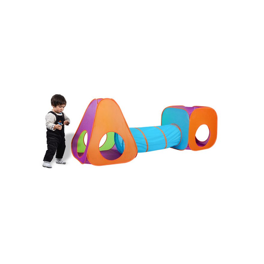 Ingenting er morsommere enn å leke hus og krabbe gjennom tunnel. Dette gøyale leketeltet består av 3 separate deler som kan brukes hver for seg, og er enkelt å pakke sammen i tilhørende veske.