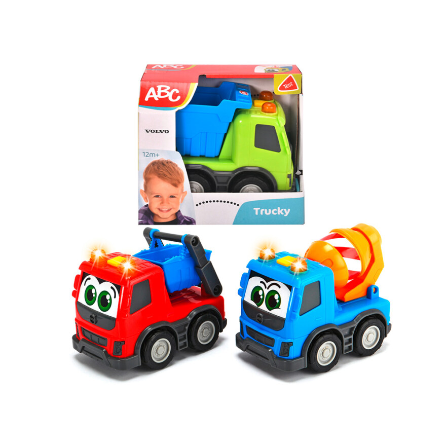 ABC Volvo biler: Oppdag verden på en barnevennlig måte! Med ABC Volvo tippebil, sementblander eller containertruck er morsom lek uunngåelig. Den barnevennlige frihjul -lekebilen er ideell for trening av motoriske ferdigheter og for å oppdage farger og former. Barn over ett år av opplever spennende lys- og lydeffekter og kan flytte forskjellige deler. Batteriene er inkludert, slik at leken kan starte med en gang.