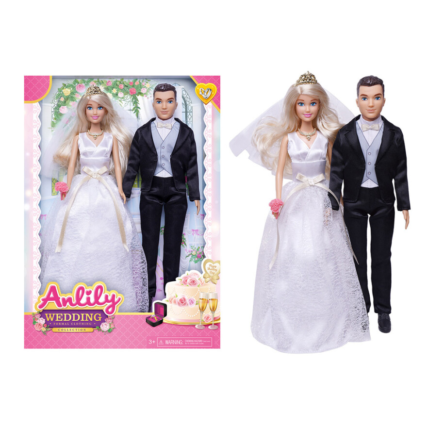 Bli med på bryllup! Anlily skal gifte seg. Hun har på seg en vakker brudekjole og holder sin brudebukett, sammen med sin stilige brudgom iført dress.