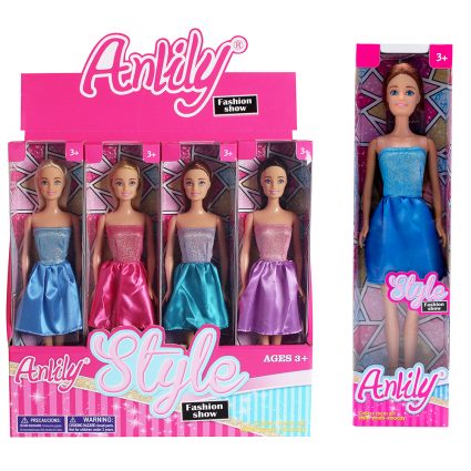 Velg mellom fire forskjellige fashion-dukker. De har forskjellige farger på kjolen og håret. Dukkene er 29 cm.