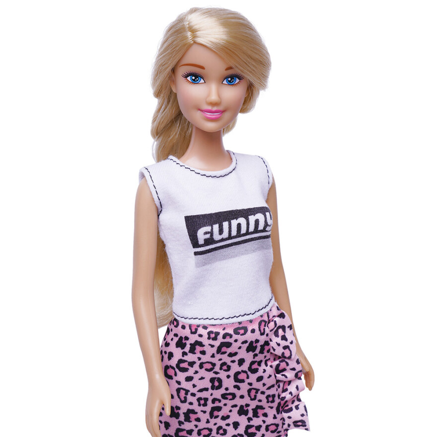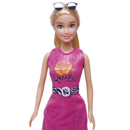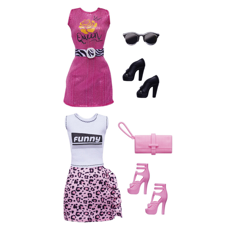 Anlily Fashion Style med hele tre forskjellige moteantrekk. Inkluderer 3 kjoler, 3 par sko, clutch-veske og solbriller.