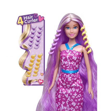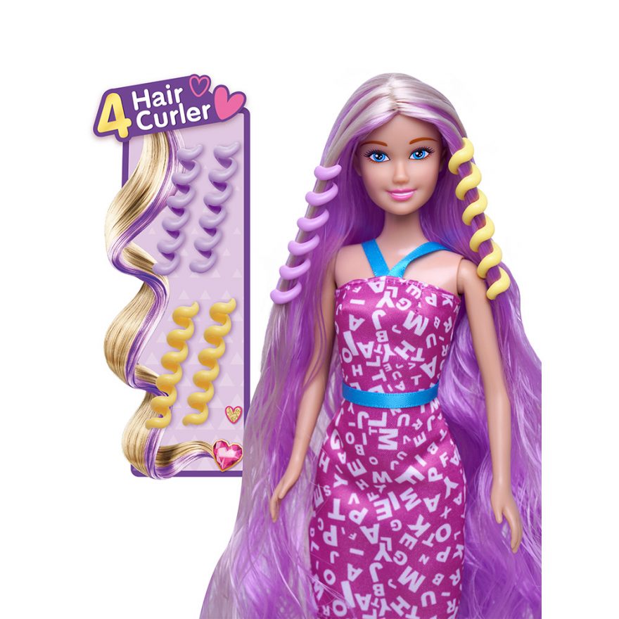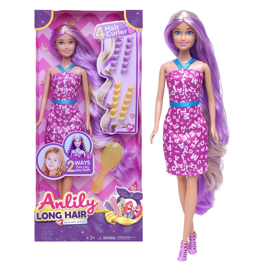 Anlily dukke med langt hår og redskap til å lage flotte krøller med.
