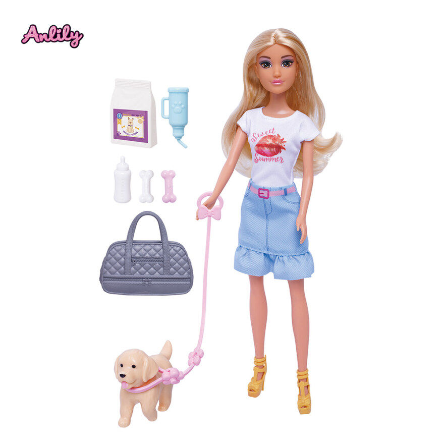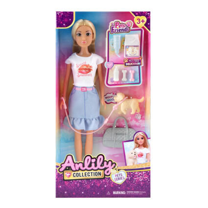 Dette lekesettet lar barn bli med Anlily på en koselig tur med hunden sin, komplett med antrekk og tilbehør som gjør rolleleken levende og engasjerende. Anlily er kledd for en dag ute, og med hund, koppel og tilbehør får barna alt de trenger for kreativ og omsorgsfull lek.