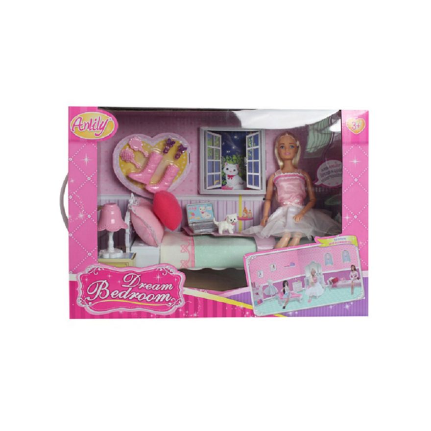 Anlily har fått seg fint, nytt soverom! Med dette flotte settet får du mye med, blant annet en seng, nattbordslampe, hårbørste med mer.