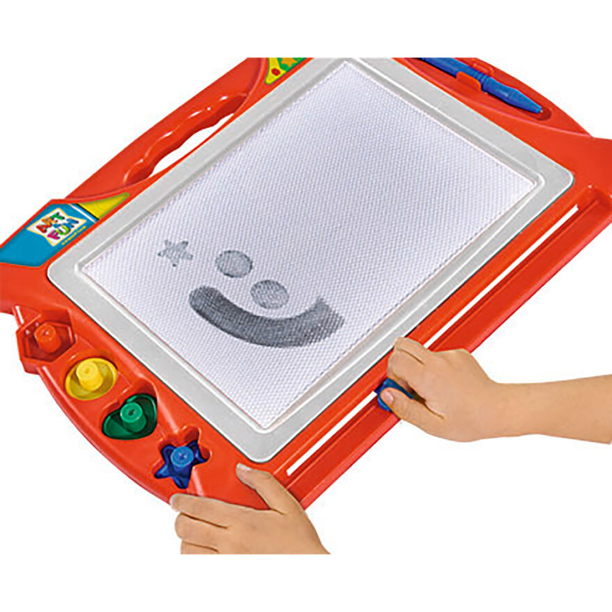 Alle små Picassoer kan la kreativiteten flyte fritt, selv når de er på reisefot, med denne magnetiske tegnetavlen fra Art & Fun. Den magnetiske tegnetavlen lar barna tegne om og om igjen, da motivet enkelt viskes ut med et drag. Dekorer tegningene med fire forskjellige stempler for ekstra moro. En magnetisk penn følger med, slik at barna kan begynne å tegne med en gang.