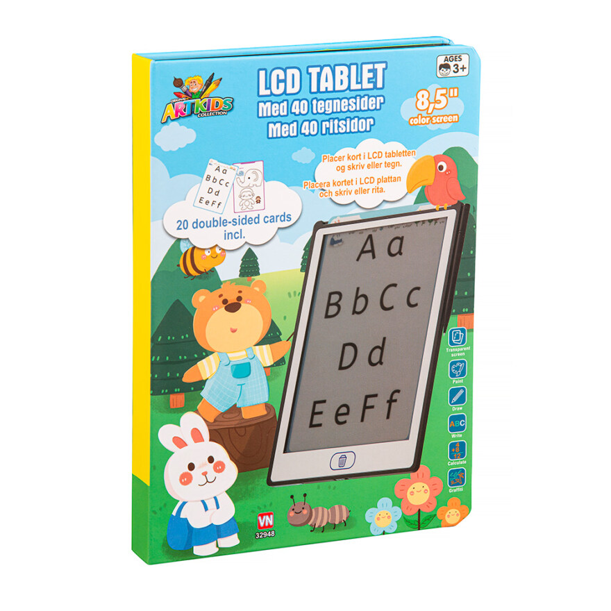 En lett og brukervennlig LCD tegnebok som gjør det enkelt for barn å tegne, viske ut og skape nye kunstverk igjen og igjen. Med en 8,5" skjerm og kompakt størrelse på 22 x 15 cm er den perfekt både hjemme og på farten. Tegneboken rommer opptil 40 tegninger, og inkluderer et CR2025-batteri slik at barnet kan ta den i bruk med en gang. Passer fra 3 år.
