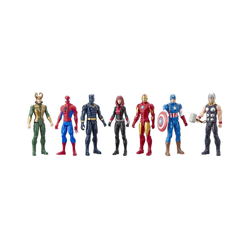 Multipakke med hele 7 helter fra Marvel-universet. Loki, Spiderman, Black Panther, Black Widow, Iron-man, Captain America og Thor.