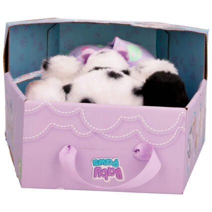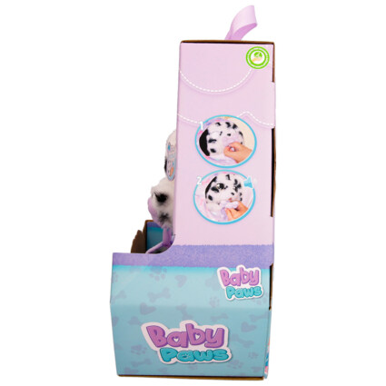 Baby Paws er søte valper som elsker å bli båret rundt med deg, uansett hvor du går. Ta bort deres personlige smokk og se dem åpne øynene for første gang mens de lager søte lyder. Når du tar dem bort fra teppet vil du oppdage den myke og myke kroppen deres!