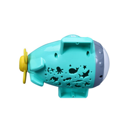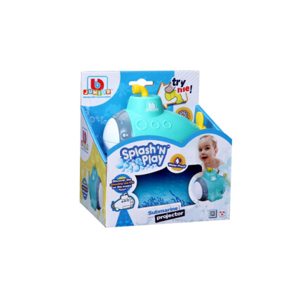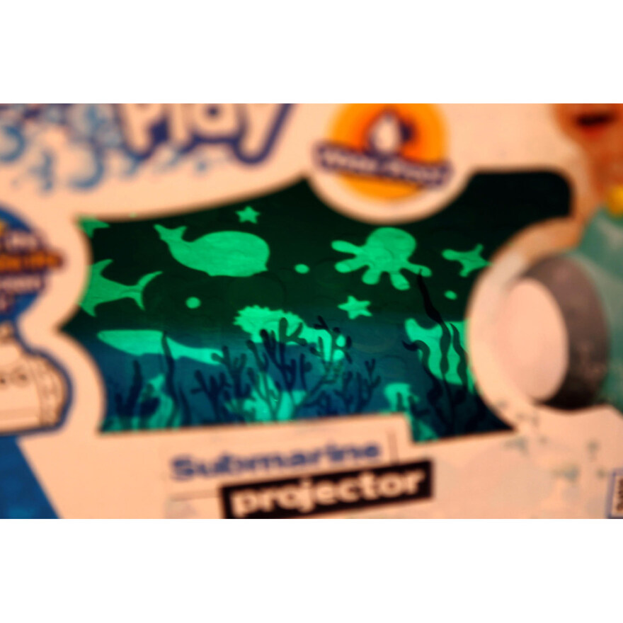 Ubåtbadeleke med en projektor i basen. Trykk på periskopet og ubåten vil projisere en sjølivsscene rett under den. Legg den i badekaret, og den kan projisere bilder på bunnen av karet når den flyter på overflaten. Denne vanntette leken er ideell for små barn. Leveres i "Try me"-stil emballasje.
