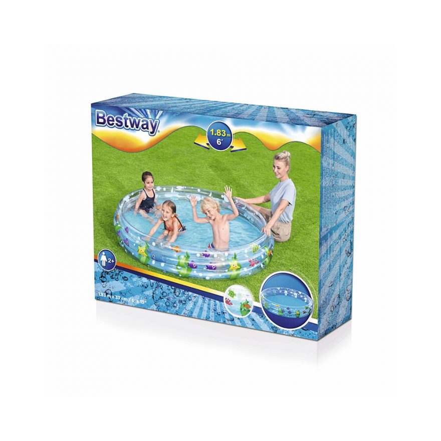 Gjør sommerdagene ekstra morsomme med dette barnebassenget fra Bestway! Med tre oppblåsbare ringer og en diameter på 183 cm, er det god plass til lek og avkjøling for de minste.