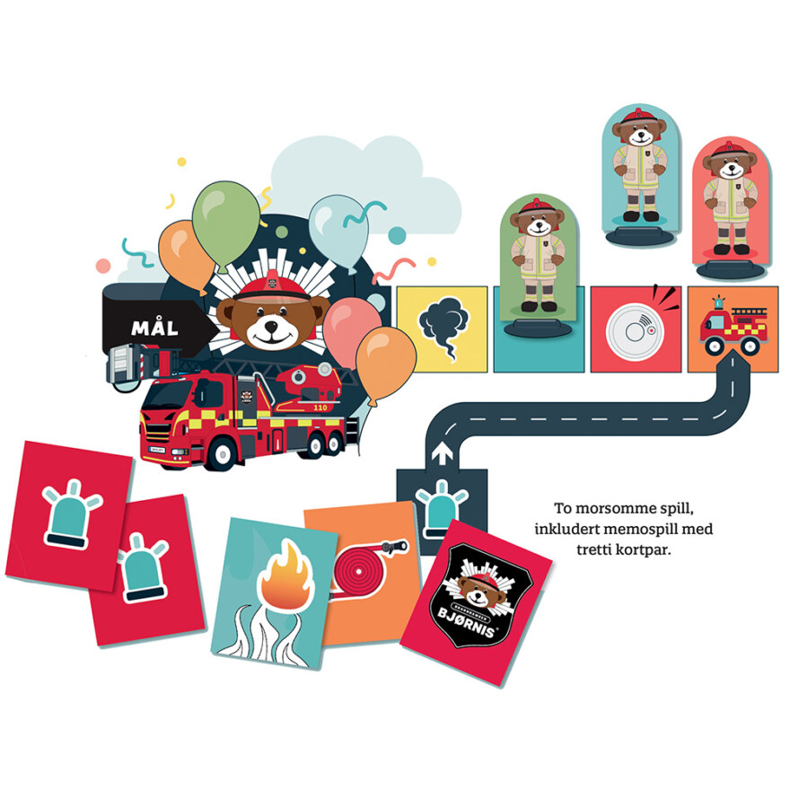 Bli med på utrykning! Alarmen går på brannstasjonen, og dagen er i gang med full utrykning. Bli med å hjelpe Bjørnis å komme fra start til mål.