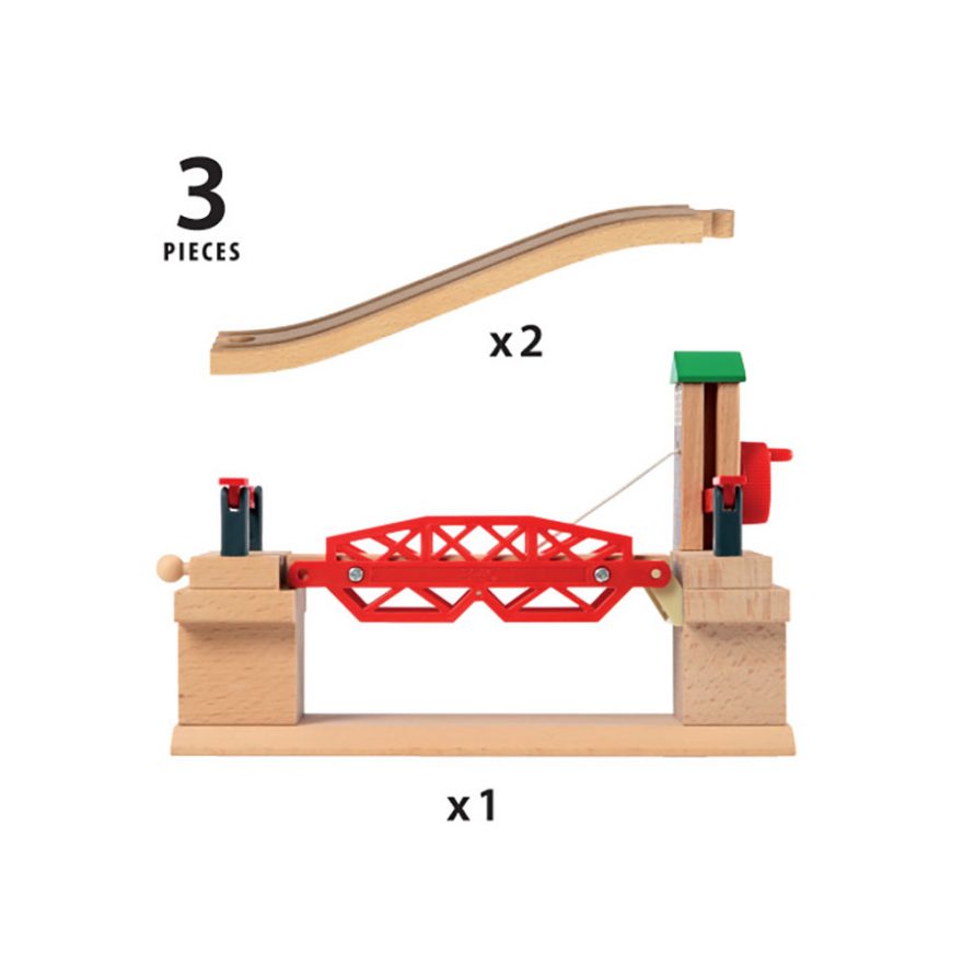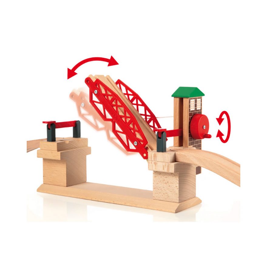 Det er båtens tur til å passere. Bare sveiv på sveiven for å løfte broa og manuelt senke stopp barrierene. Inkluderer 2 stigende skinner for enkel kobling til togbane systemet.