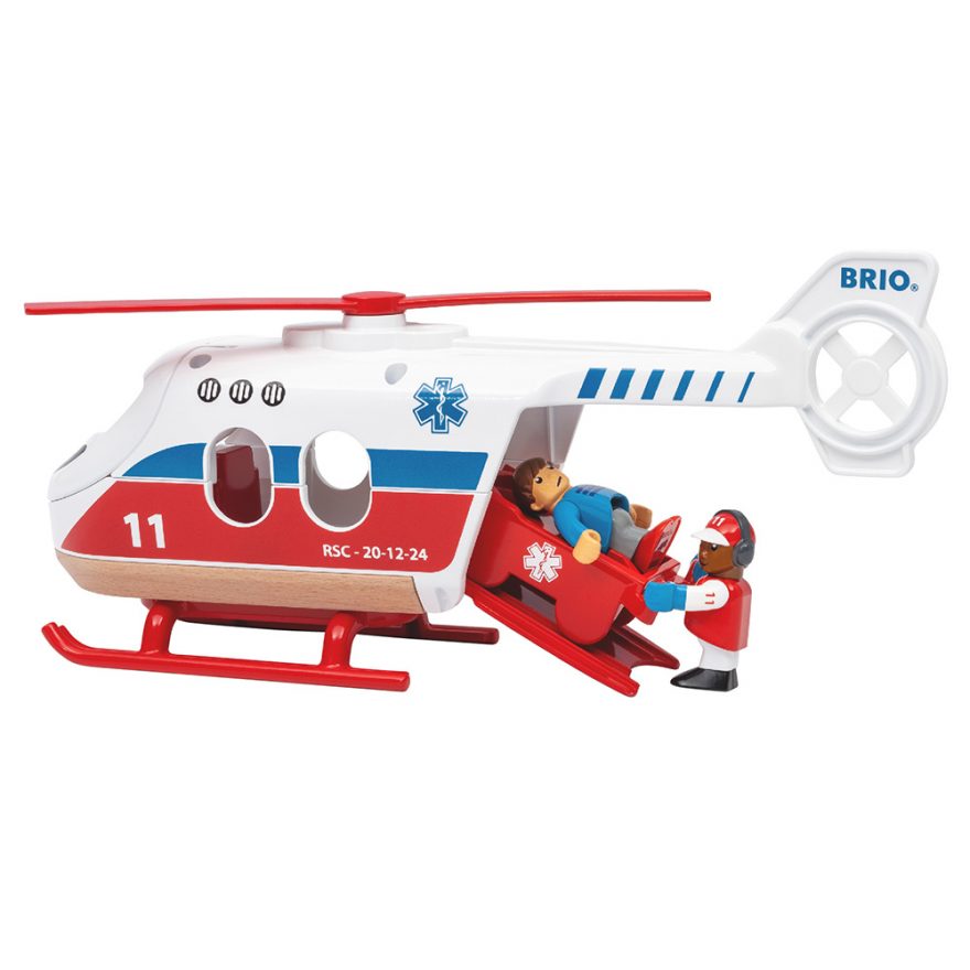 Fly til unnsetning med Redningshelikopter. Med spinnende rotorblader, dører som kan åpnes foran og bak og en båre til den sårede personen, er helikopteret og piloten klar for farlige utrykninger og henting av pasienter. Hjelp den sårede figuren opp på båren og last den inn bak i helikopteret før du låser døren. Deretter kan du lette og fly tilbake til basen.