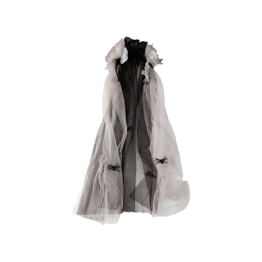Stilig brudeslør i svart-hvitt med krypende edderkopper. Passer perfekt til utkledning og halloween. Kanskje du vil være en zombie-brud?