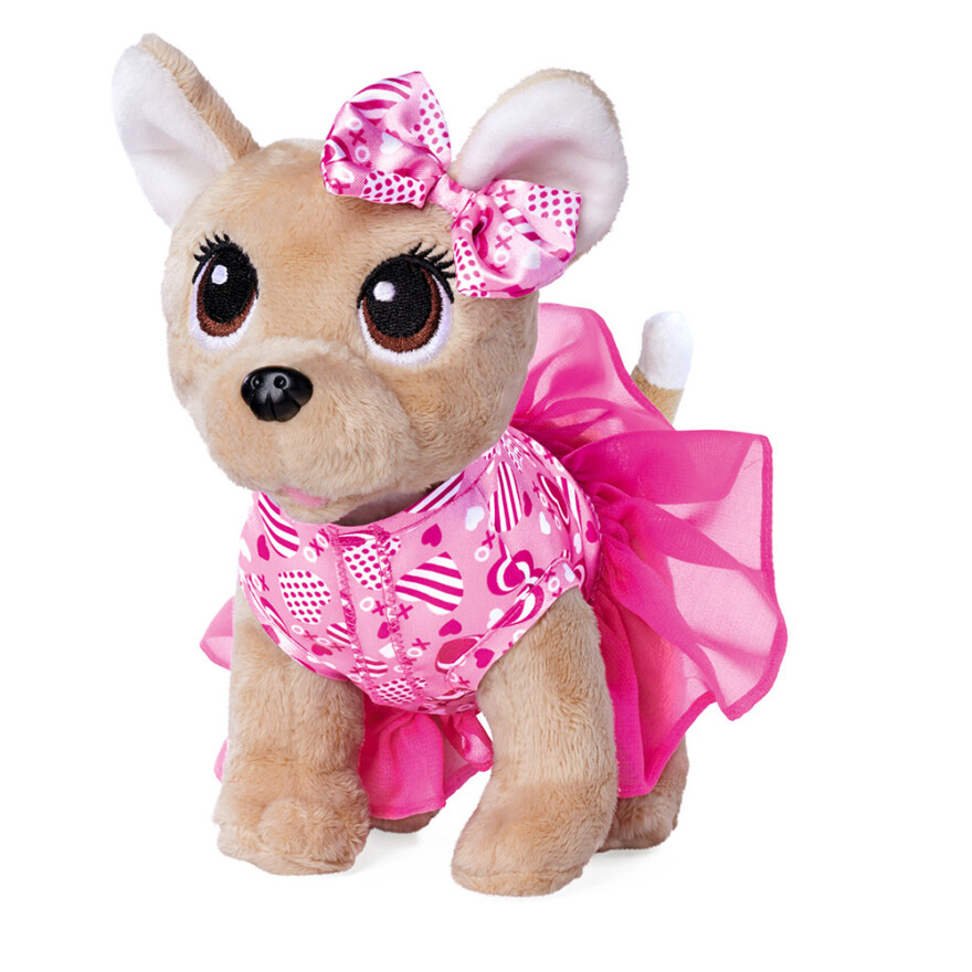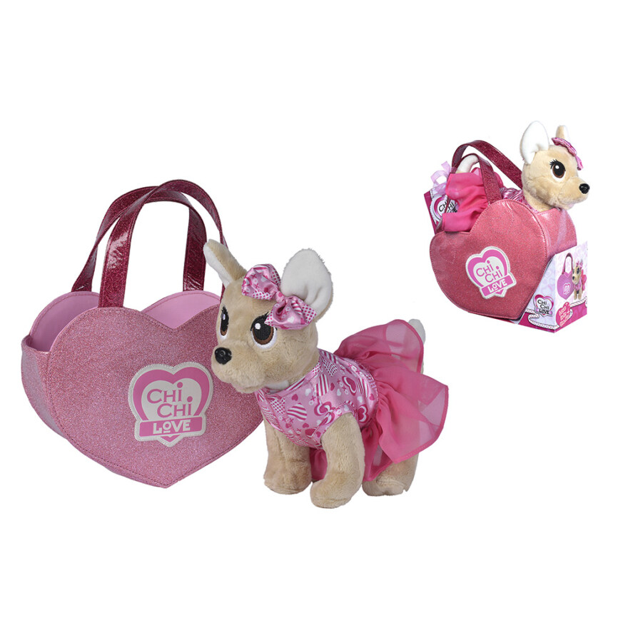 Chihuahua hunden ChiChi LOVE som kosedyr med søt kjole og sløyfe. Inkludert glitrende hjerteformet veske.
