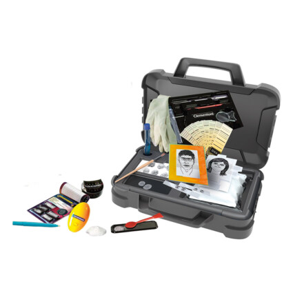 Kofferten til en detektiv som skal etterforske på åstedet og finne ut den skyldige. Finn fingeravtrykk; reraliser gipsmodeller, sorter bevisene, isoler åstedet og les skjulte meldinger. Den har alle verktøyene du trenger for å bli en ekte detektiv. Et leketøy som er morsomt, vitenskapelig og mystisk.