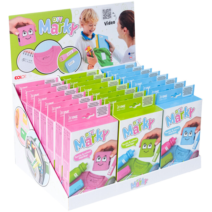 Gjør merking av eiendeler enkelt og morsomt med Colop Marky DIY Pink! Dette settet lar deg lage dine egne navnstempel til tekstiler og glatte overflater som matbokser og drikkeflasker. Perfekt for å merke klær, skoleutstyr og andre personlige eiendeler. Gjør merking enkelt med Colop Marky DIY!