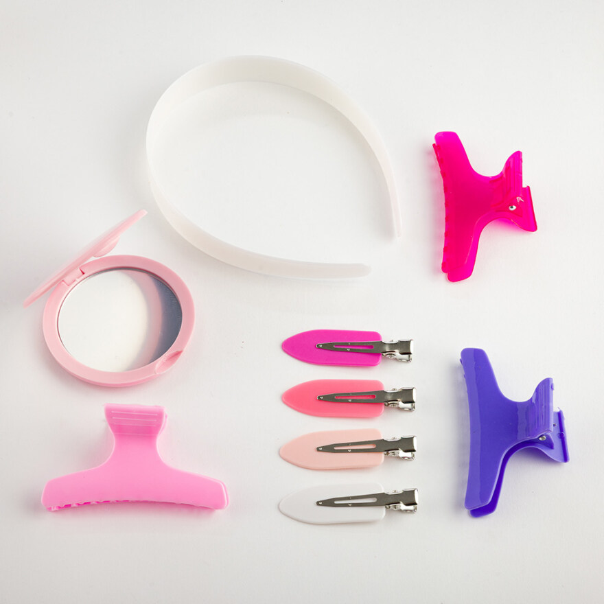 • Inneholder klips, hårbånd og annet tilbehør