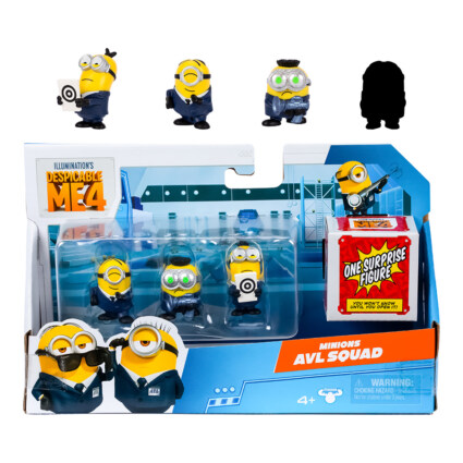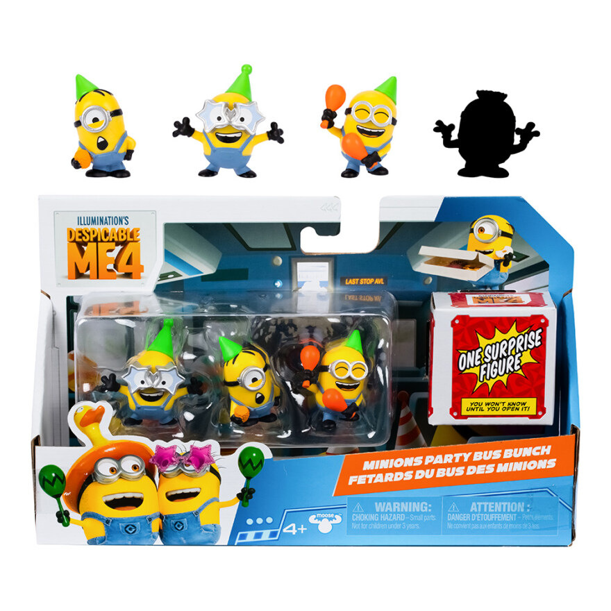 Minions er tilbake – bedre enn noen gang! Nå kan barna gjenskape morsomme scener fra Despicable Me 4 hjemme! Disse detaljerte 5 cm samlefigurene kommer i to forskjellige firefigurspakker – Minions AVL Squad og Minions Party Bus Bunch.