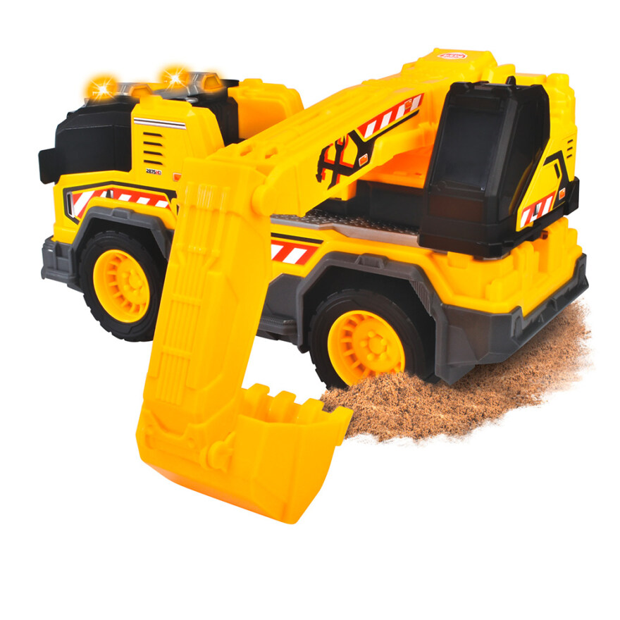 Noen som trenger en graver? Nydelig! Her kommer gravemaskinen fra Dickie Toys. På lastebilen er det en bevegelig arm med tre forskjellige hengselpunkter og en traktorgraver. Armen kan snurre en hel omgang. Gravemaskinen har også både lys og lyder for å gjøre leken morsom og spennende. Hvis du er en liten maskinentusiast, er gravemaskinen fra Dickie den perfekte gaven.