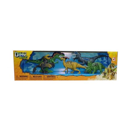 Flott sett med dinosaurer fra Dino Valley som inneholder fem tøffe dinosaurer med bevegelige føtter og haler.