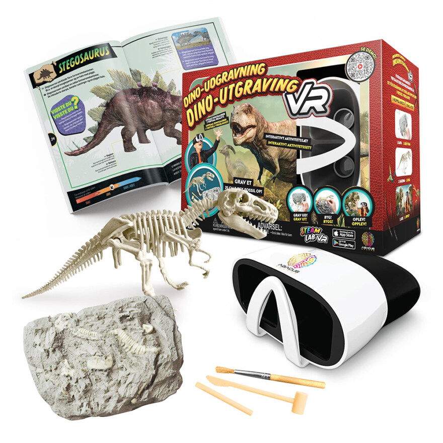 Grav ut din egen T-rex fossil og utforsk dinosaurens forhistoriske verden i Virtual Reality! Med denne interaktive aktivitetsettet kan du reise tilbake i tid og gå sammen med dinosaurene i 8 fascinerende Virtual Reality opplevelser. Få kunnskap om hvordan de største landdyrene som noen gang har levd, regjerer verden. Bruk de medfølgende grave redskaper til å grave ut fossil delene og sett deretter delene sammen og utstill det store T-rex fossilet.