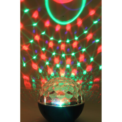 Disco Ball Bluetooth Lightshow Speaker har en spesial innebygget rotasjonsmotor, som gir en roterende effekt som en riktig discokule og den er kraftig nok til at fylle opp til et 185 kvadratmeter stort rom med lyseffekter.