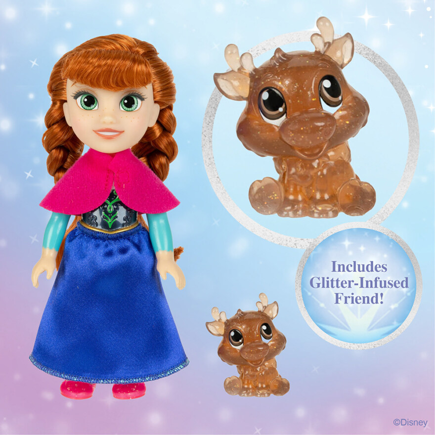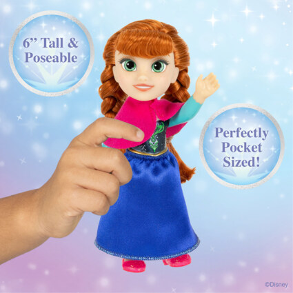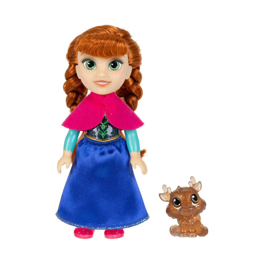 En søt og kompakt Frozen‑dukke som gjør det enkelt å ta favorittøyeblikkene fra Frost med på farten. Denne 15 cm store Anna‑dukken kommer kledd i sitt reiseklare antrekk og har med seg sin glitrende venn, Sven. Perfekt for barn som liker å gjenskape scener fra filmen eller finne på egne eventyr.