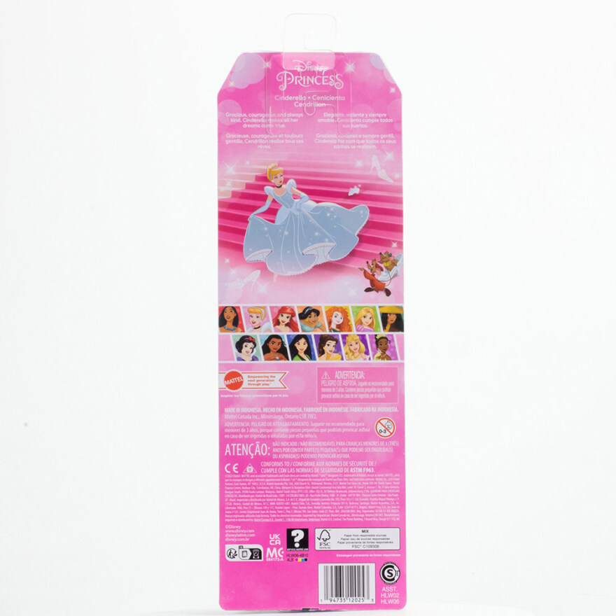 Denne motedukken er inspirert av Askepott og har et glitrende antrekk med matchende sko og tiara. Den gjør leken enkel å sette i gang og passer for barn som vil skape egne eventyr med kjente Disney‑karakterer. Dukken har bøyelige detaljer som gjør rollelek enkel og morsom.