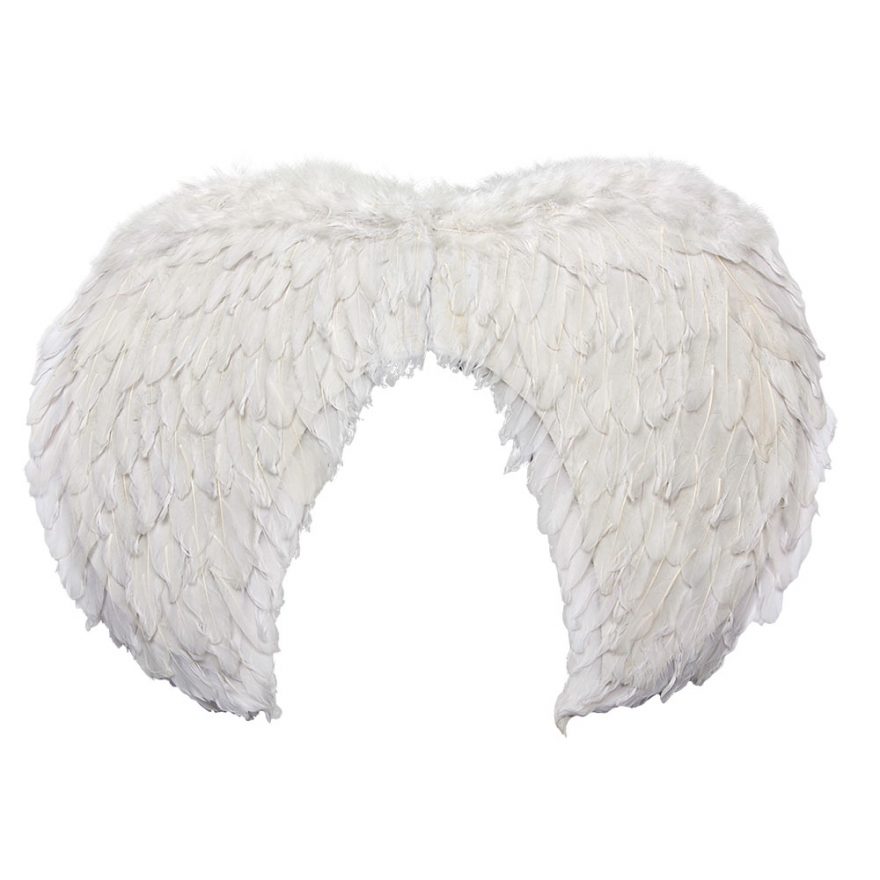 Englevinger i hvit farge. Vingene passer både barn og voksne. Utmerket til Halloween og utkledning!