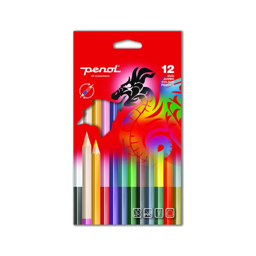 Oppdag kreativiteten med Penol fargeblyanter, spesielt designet for barn! Hver blyant har to farger, totalt 24 klare og rene farger som gir uendelige muligheter for kunstneriske uttrykk.