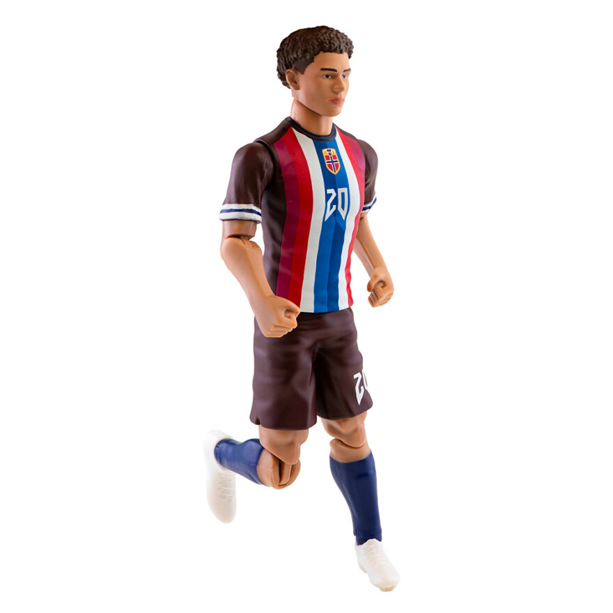 Denne flotte Nusa‑figuren i Norges landslagsdrakt er perfekt for barn som liker fotball og for samlere som ønsker et kult tilskudd til hylla. Figuren er 20 cm høy, har 10 bøyelige ledd som gjør det enkelt å lage dynamiske poseringer. Den leveres i en gaveeske sammen med en liten fotball – klar for lek, display og fotballmoro.
