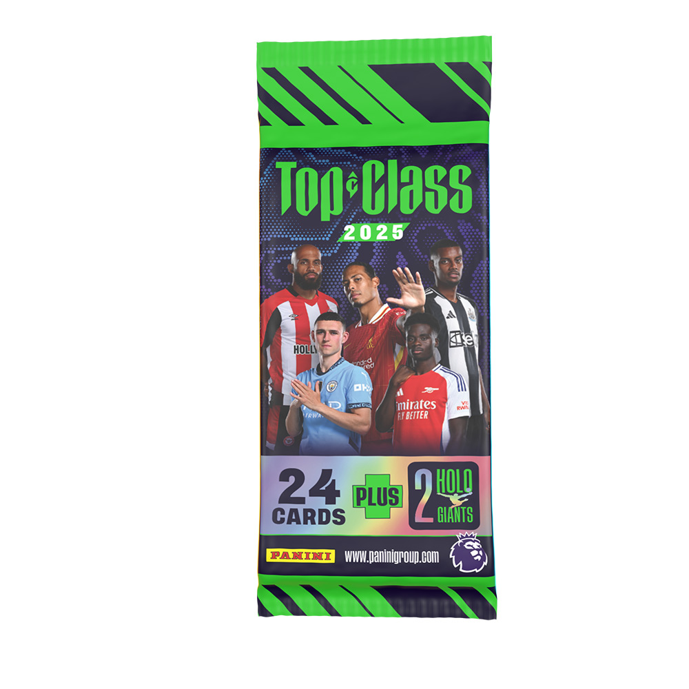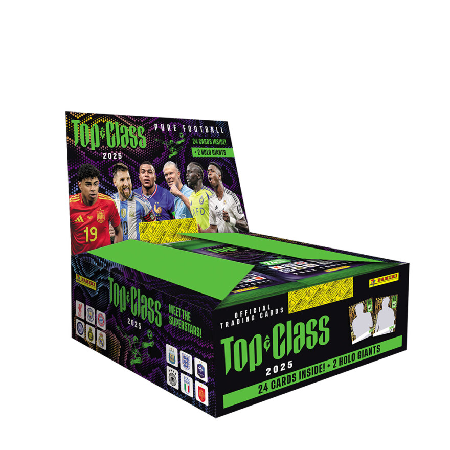- Panini FIFA 365 Top Class 2025 Fat Pack inneholder 24 kort og 2 Holo Giants