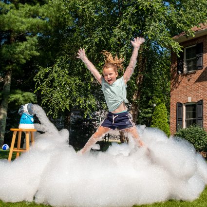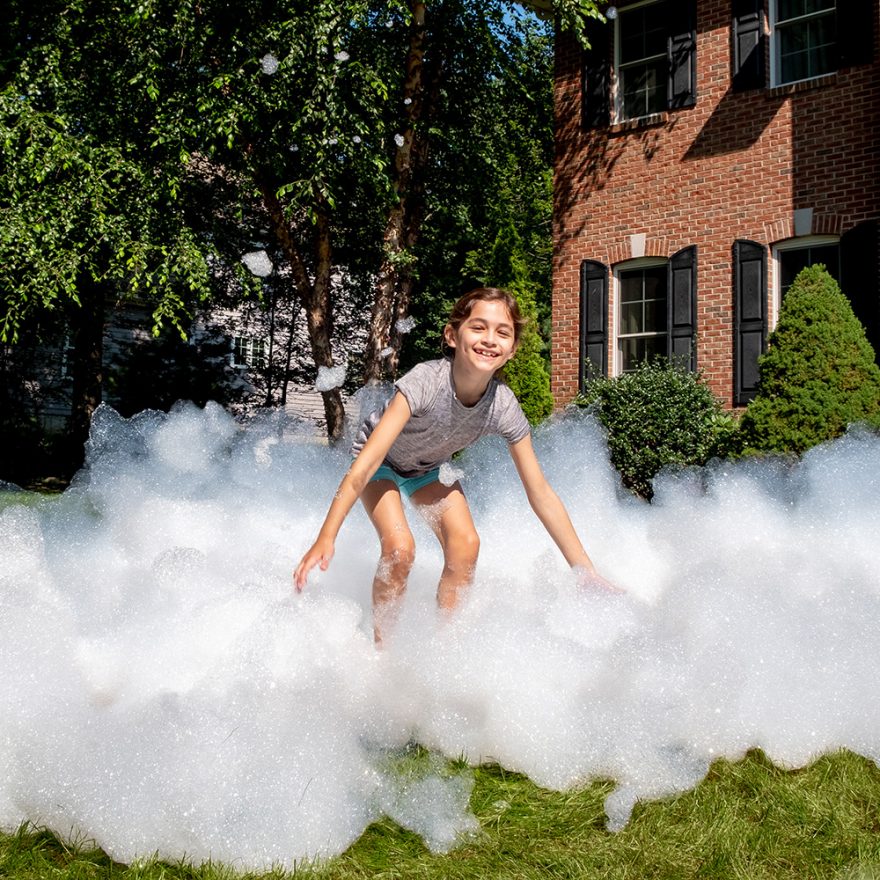 Skummaskin for super moro i hagen for store og små! Maskinen inkluderer 3 x 98 ml skumkonsentrat.