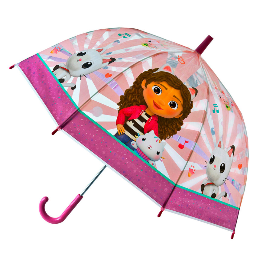 Din egen Gabbys Dukkehus paraply for regnfulle dager! Denne kuppelformede paraplyen fra Undercover er 66 cm lang med en diameter på 69 cm, og liver opp enhver regnfull dag. Perfekt for å beskytte de minste mot regn og ruskevær, gjør denne fargerike paraplyen turer i regnet til en morsom opplevelse.