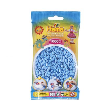 Hama Midi perler i pose med 1.000 stk. Farge: Pastell blå. Med perler i mange farger kan du lage mange slags mønstre og figurer. Lek med perler øker kreativiteten og trener finmotorikk, mønstergjengivelse, fargelære, logikk og geometrisk sans. Kun fantasien setter grenser.