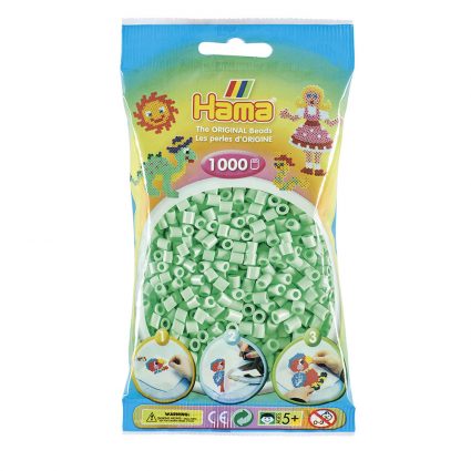Hama Midi perler i pose med 1.000 stk. Farge: Pastell mint. Med perler i mange farger kan du lage mange slags mønstre og figurer. Lek med perler øker kreativiteten og trener finmotorikk, mønstergjengivelse, fargelære, logikk og geometrisk sans. Kun fantasien setter grenser.