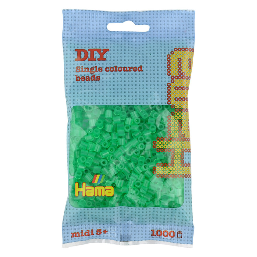 Hama Midi perler i pose med 1.000 stk. Farge: Transparent grønn. Med perler i mange farger kan du lage mange slags mønstre og figurer. Lek med perler øker kreativiteten og trener finmotorikk, mønstergjengivelse, fargelære, logikk og geometrisk sans. Kun fantasien setter grenser.