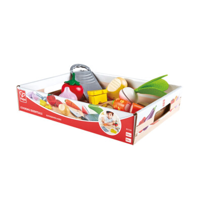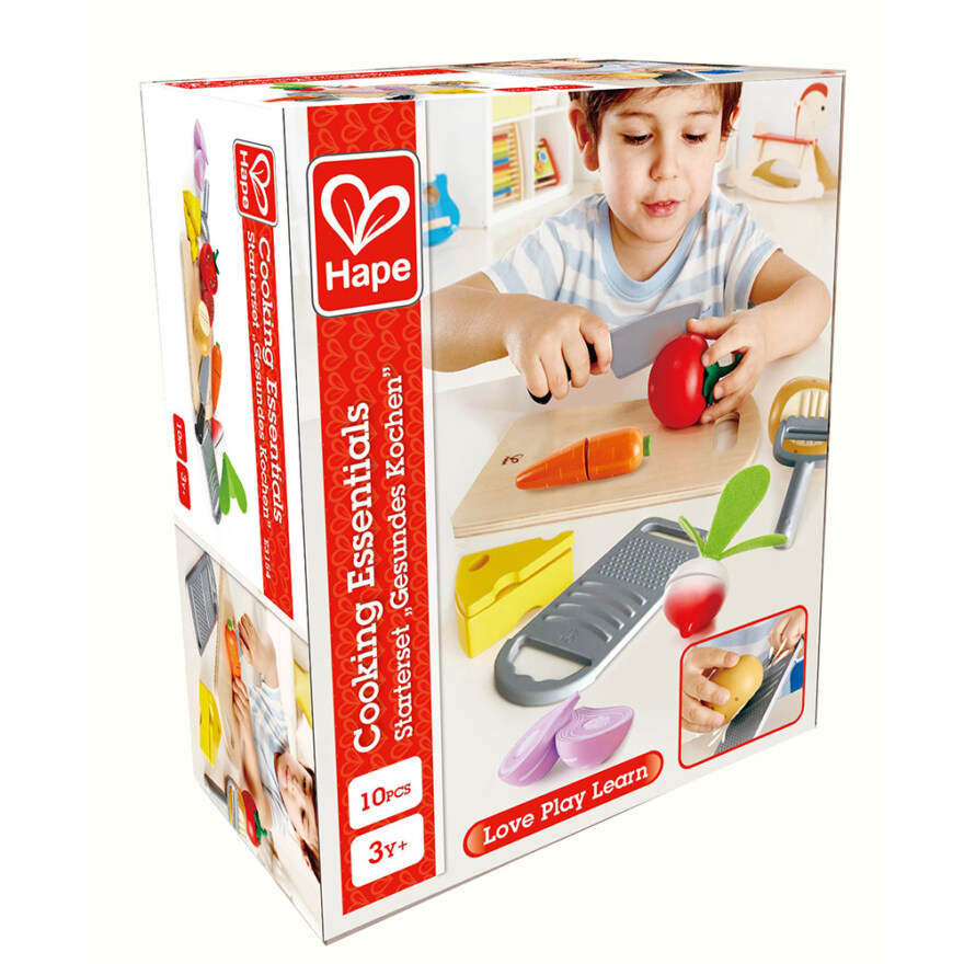 Det er tid for å spise med Hape sitt matlekesett i tre – hvem sa at middagstid ikke kan være morsomt? Dette settet oppmuntrer til fantasi, rollelek og kreativitet. Lær barna hvordan de skal tilberede ingredienser og lage mat selv. Dette 10-delers lekematsettet inkluderer et skjærebrett, lekekniv, tosidig rivjern, skreller og grønnsaker. Ingrediensene kan skilles fra hverandre for virke enda mer realistiske.