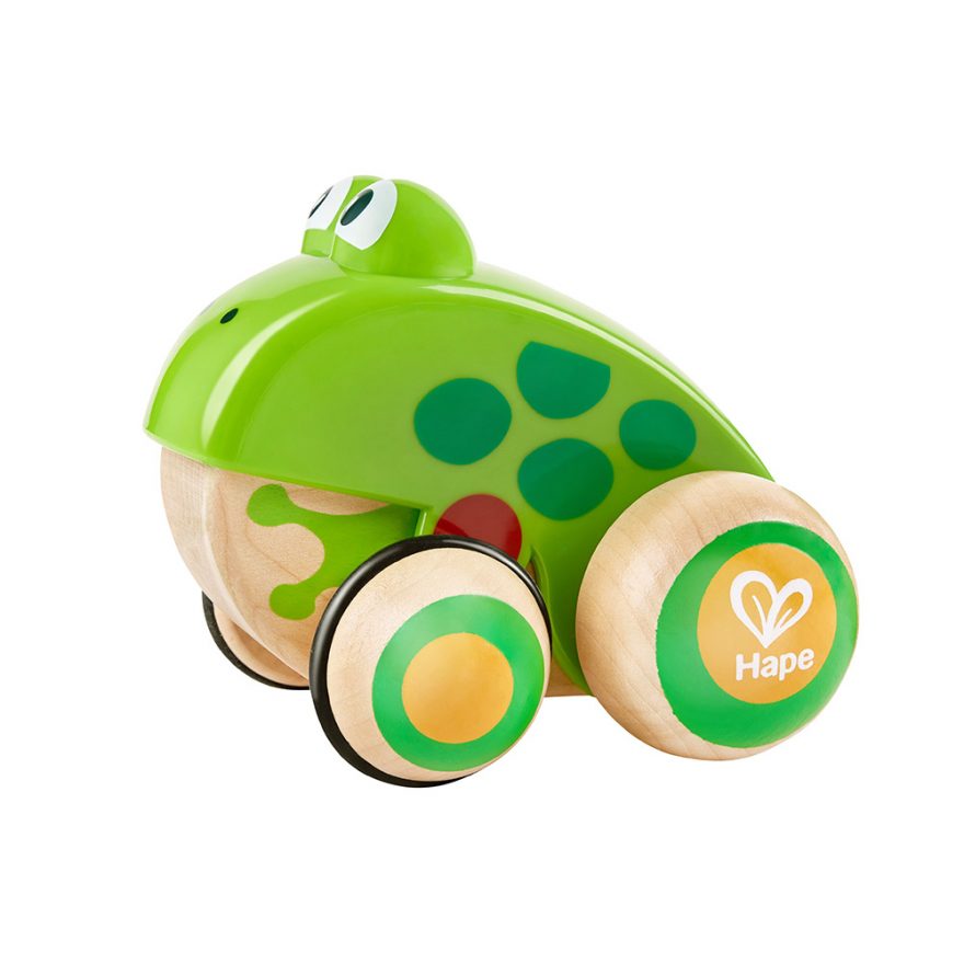 Hape Froskefamilie trekkeleke med gummikantede hjul.