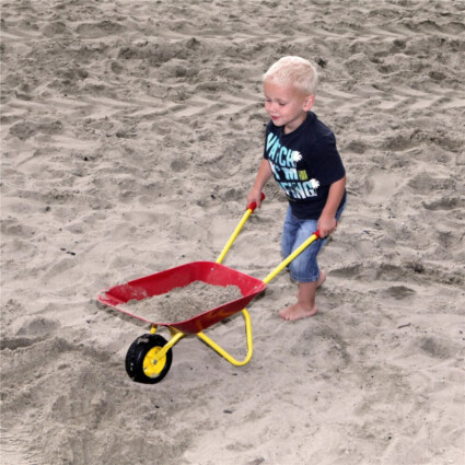 En klassisk rød trillebår som gjør hagearbeid og utelek ekstra morsomt for barn. Med barnevennlige håndtak og solid konstruksjon kan barna enkelt transportere sand, leker eller hageavfall mens de hjelper til ute. Trillebåren har en høyde på 45 cm til håndtakene, en lengde på 79 cm og kan lastes med opptil 15 kg. Perfekt for aktiv lek fra 3 år.