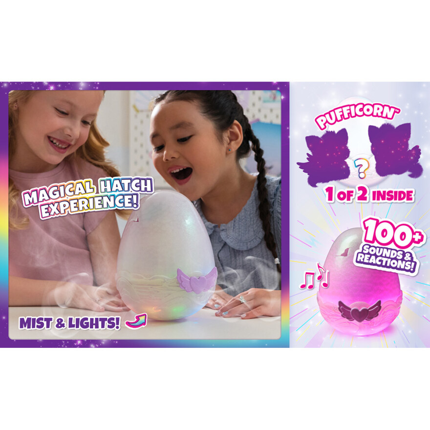 Ta med magien til Pufficorn Hatchimals Alive inn i hjemmet ditt! Dette er mystiske skapninger gjemt i fargerike egg, klare for deg å oppdage. Det finnes to typer egg: Ciel og Glace. Hvem vil du klekke ut? Det er en overraskelse!