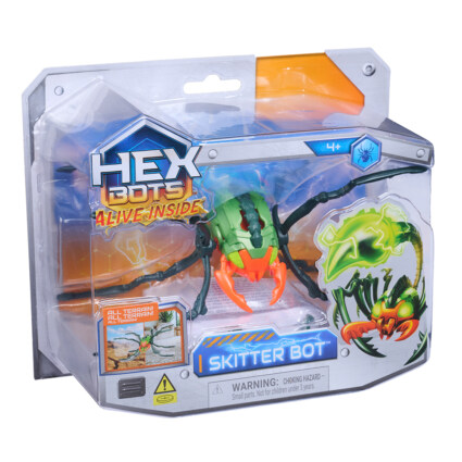 Utforsk robotlek med Hex Bots Skitter Bot! Dette autonome robotinsektet beveger seg selv på gulvet og reagerer på ulike flater. Med LED‑øyne og et spennende, krabbende design gir Skitter Bot timevis med action og moro for barn. Perfekt for barn som elsker robot‑ og actionleker.
