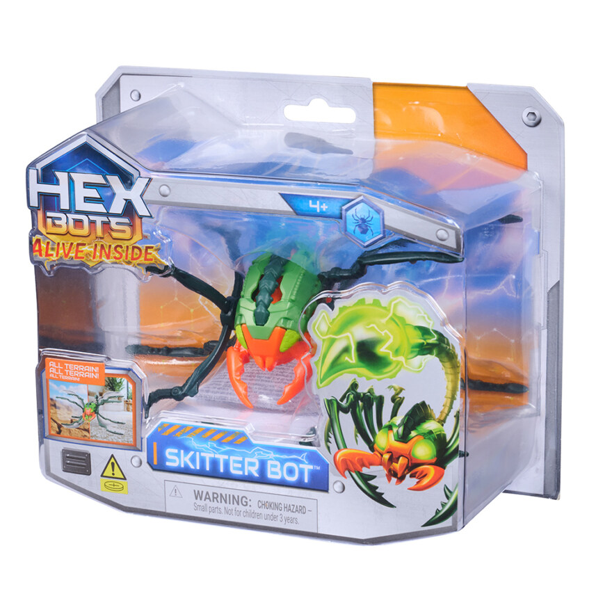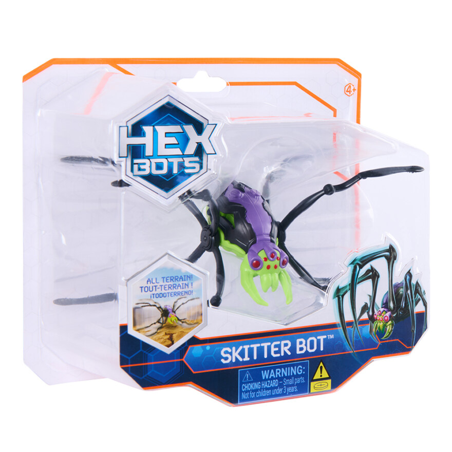 Utforsk robotlek med Hex Bots Skitter Bot! Dette autonome robotinsektet beveger seg selv på gulvet og reagerer på ulike flater. Med LED‑øyne og et spennende, krabbende design gir Skitter Bot timevis med action og moro for barn. Perfekt for barn som elsker robot‑ og actionleker.
