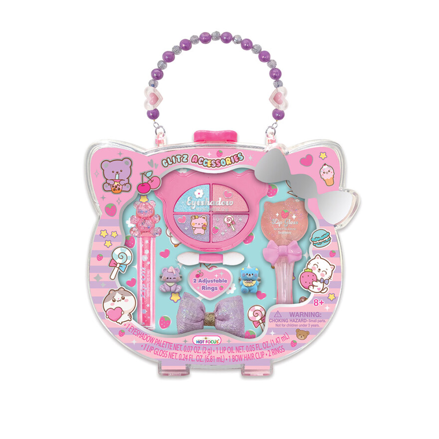 Hot Focus sminkesett i boks er perfekt for barn som elsker å eksperimentere med stil og skjønnhet. Settet inneholder alt som trengs for en liten makeover – fra øyenskygge til leppeprodukter og tilbehør. Alt er pakket i en praktisk og dekorativ boks som gjør det enkelt å ta med seg overalt.