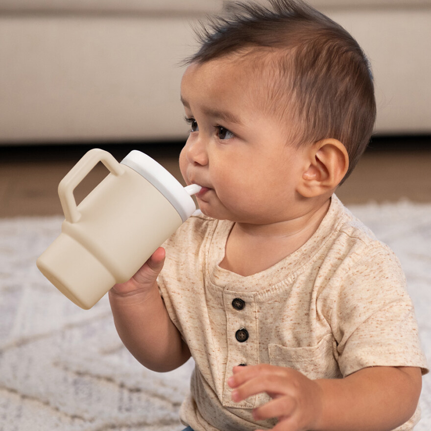 En praktisk og barnevennlig tumblerkopp i myk silikon, utviklet for å gjøre overgangen til selvstendig drikking enkel og trygg for de minste. Den lette konstruksjonen, det ergonomiske håndtaket og det smarte sugerøret gjør koppen perfekt for små hender som vil øve på å drikke selv. Den kompakte størrelsen passer i de fleste barnevogner og koppholdere, og materialet tåler både hverdagsbruk og rengjøring i oppvaskmaskin.